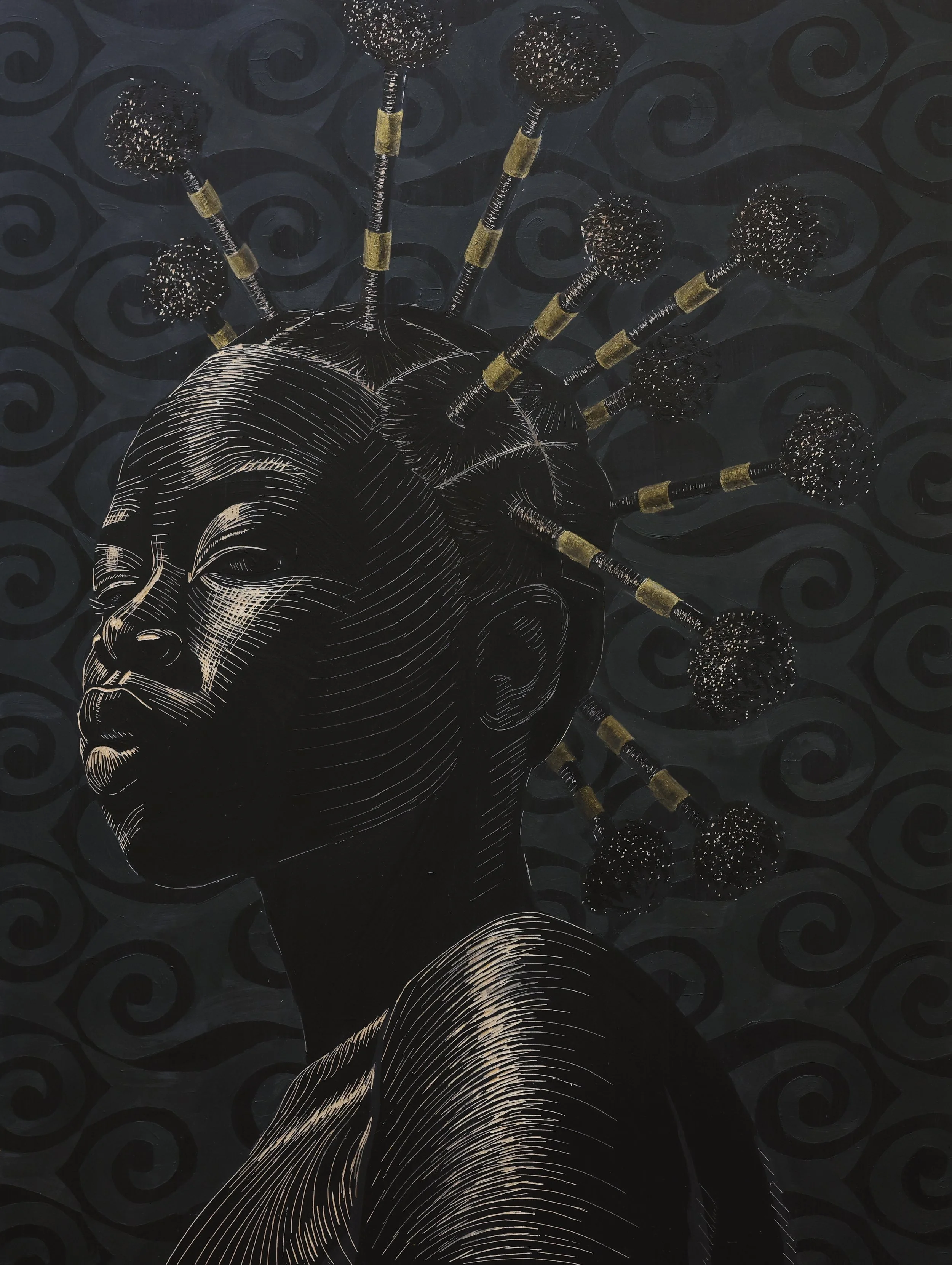 I am engaged in creating a fluid relationship between my printmaking and painting practices. The result has been the producing of mixed media works that seamlessly marry elements from both on a singular surface. In addition to printmaking and painting, the works in this portfolio employ the use of drawing, and collage.